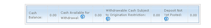 选定的账户的资金状态出现在页面顶部,如下面的图片所示。将您的鼠标放在i链接上来查看关于资金状态的补充重要信息。