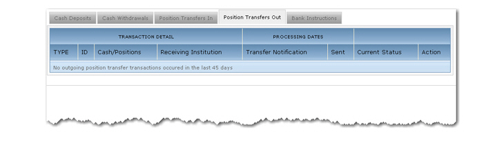 头寸转出标签对在过去45天内所作的每笔头寸转出显示了如下信息: