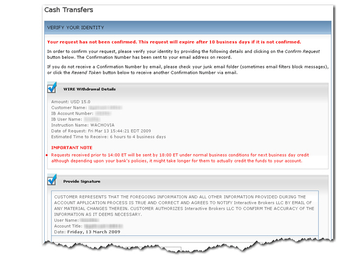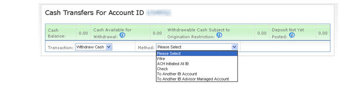 请求从您的IB账户中取出现金
