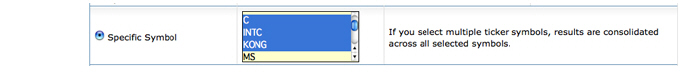 点击特定的代码来查看在选定的账户中交易的一个或多个交易代码的表现结果。账户中交易的所有代码都可用。使用Ctrl+点击键盘组合来选择多个代码。如果您选择了多个交易代码,结果在所有选定的代码中被合并。