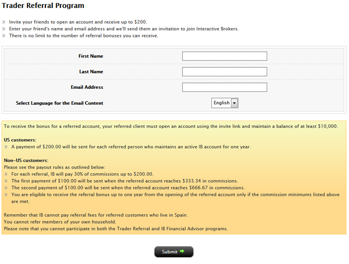 交易人推荐项目让您发送一个邀请函给熟悉的人在盈透证券开户,如此您将得到上至200美元的奖励。您获得奖励的推荐人数目没有限制。