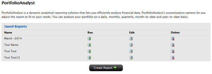 投资组合分析(PortfolioAnalyst)允许您用创建的和保存的报告(基于一组衡量标准和可选择的用它们的数据和选取的行业标准进行比较得出的)来评估您的IB投资组合的表现。在您创建并保存报告之后,您能够运行、编辑或删除这些报告。
