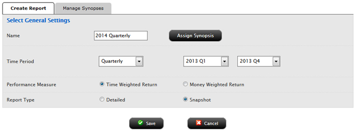 - 按要求完成输入或编辑投资组合分析报告设置,然后保存报告。