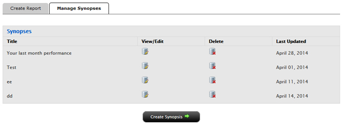 - 点击管理概要标签。管理概要标签显示所有您之前保存的概要。从这个标签页面,您能够查看或编辑一个现有的概要,删除概要或创建一个新的概要。