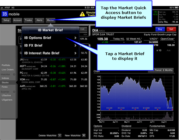 点击市场概况直接在您的iPad上观看。关闭市场概况,点击返回(Back)按钮。