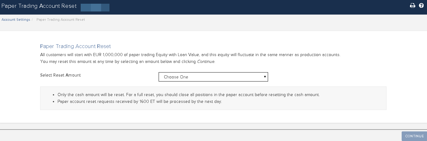 Note: Only the cash amount will be reset. For a full reset, close all of the positions in your paper account before resetting the cash amount.