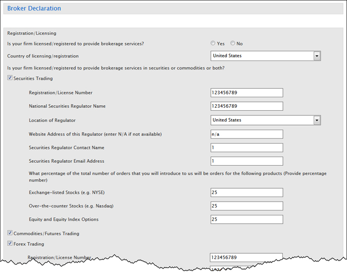 You can update your broker registration information on the Manage Account > Account Information > Broker Declaration page in Account Management. The Broker Declaration page lets you update such information as securities and commodities/futures trading registration, and information about your brokerage business.