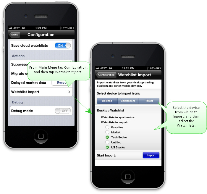 3. From the Import screen, select the device or devices from which you want to import Watchlists.