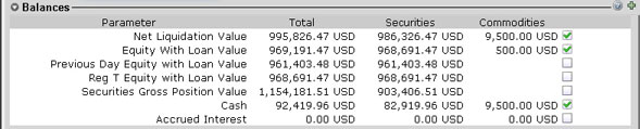 The Balances section shows your account balances for securities, commodities and in total. These balances don't include margin requirements.