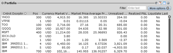 The Portfolio section shows the current value of each position and allows you to mark any position to be liquidated last in the event of a margin call. Accounts with the ability to make transfers between brokers will also have an In Transit tab to monitor DVPs and other position transfers.